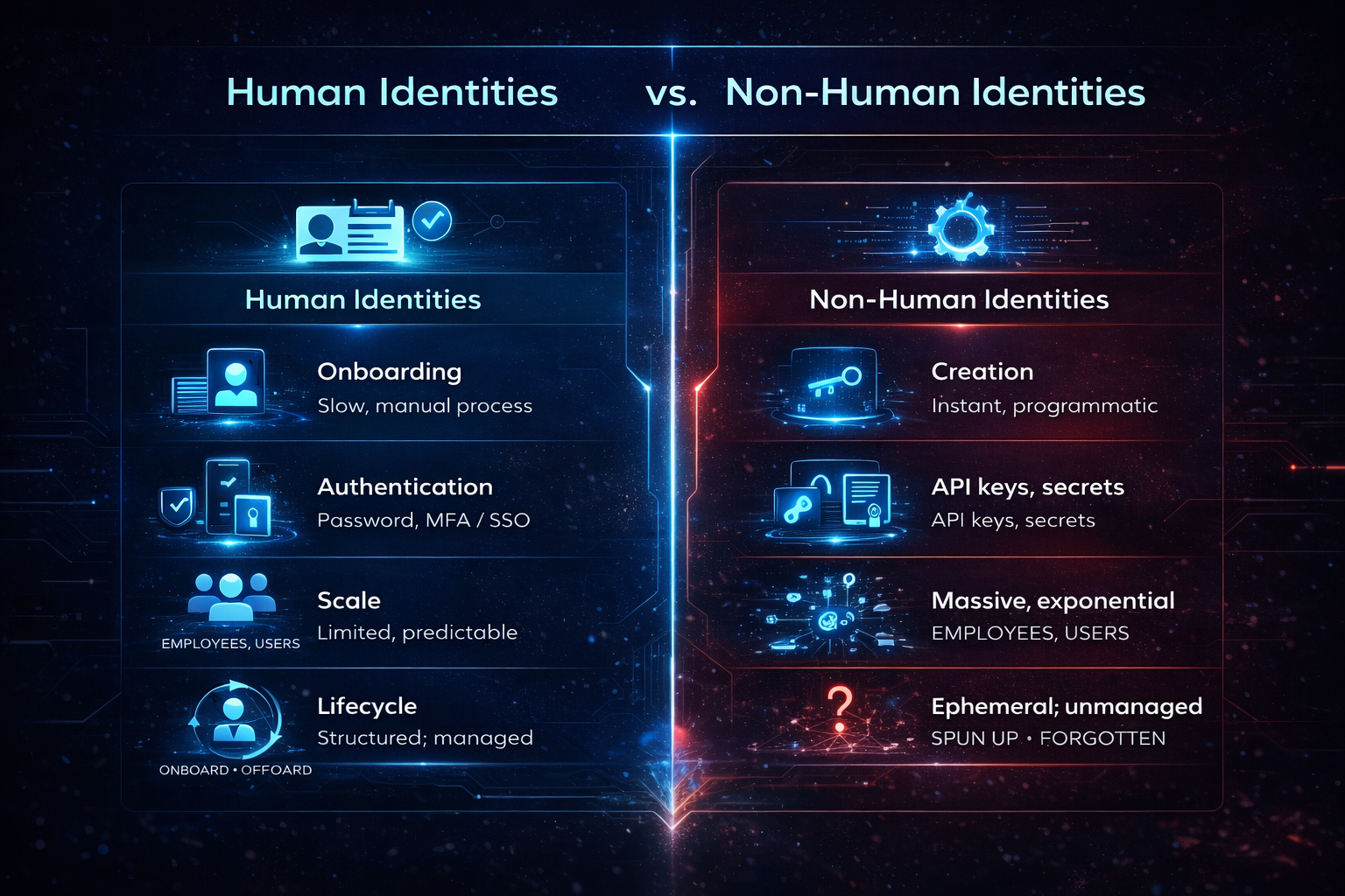 Traditional identity and access management was built for people. Non-human identities operate differently, at a scale and speed those systems were not designed to handle.